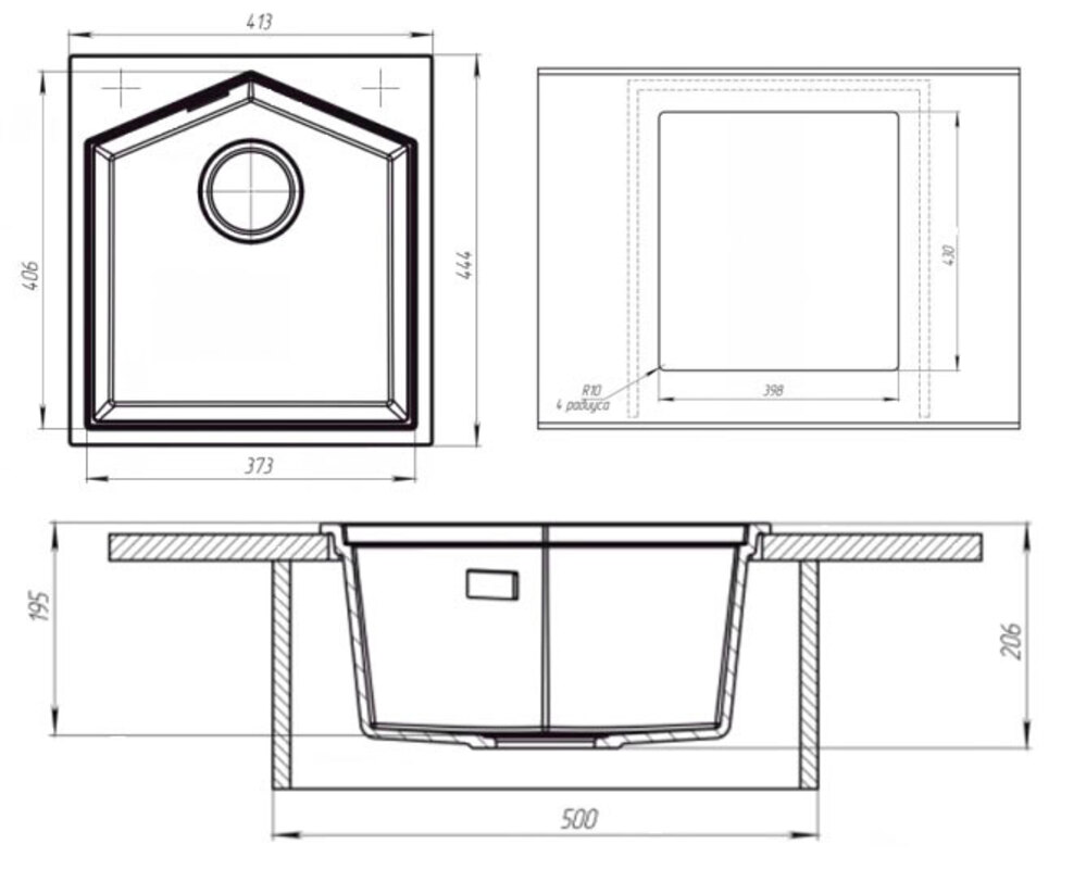- Мойка KitKraken Ocean 45 Carbone noir чёрный 413х444