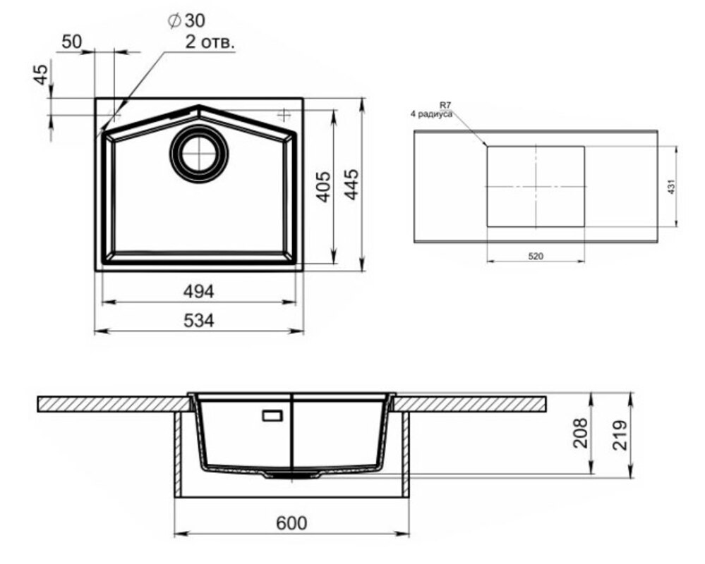 Кухонная мойка Ocean 55 серая - стильная и компактная модель. Мойка имеет пятиугольную вместительную чашу и малые габариты. Минимализм и практичность в одной модели.