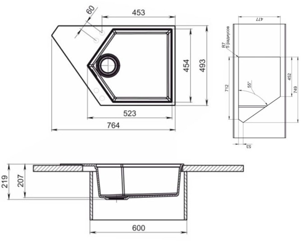 Мойка KitKraken River Grey серый 775х50010 635руб.
