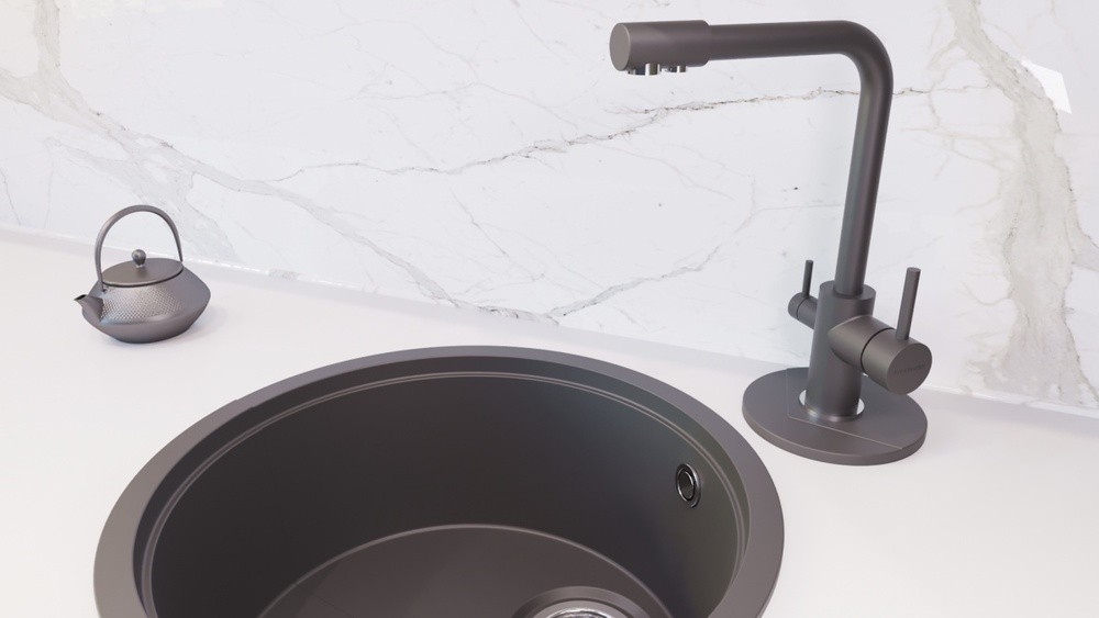 - Смеситель для кухни KitKraken SCANDI Graphite тёмно-серый